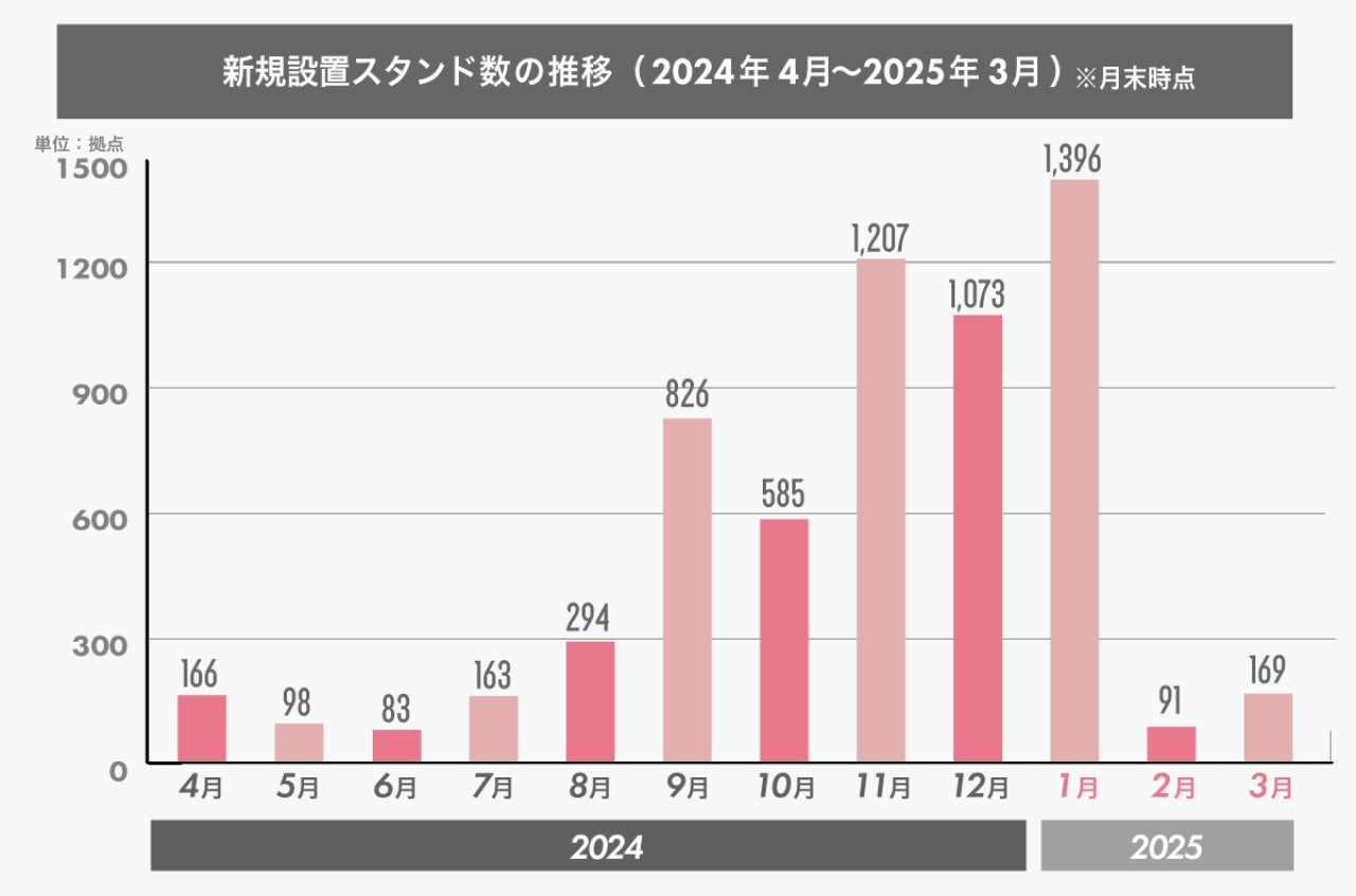 新規設置スタンド数の推移(2024年4月~2025年3月)