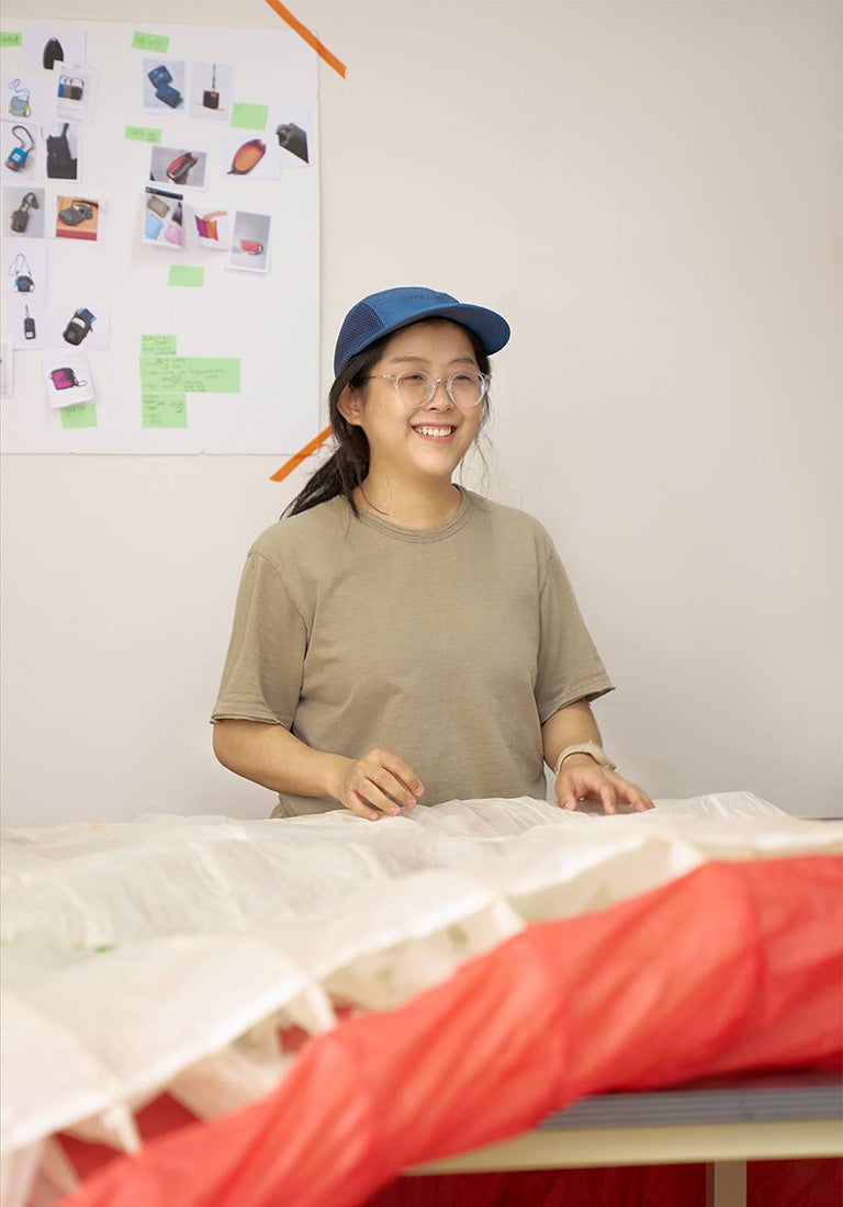 ファッションブランドでの制作経験から、“大量生産・大量消費”に疑問を持っていたOverLab代表のパク・ジョンシル氏。安全上の理由で短期間で廃棄されてしまうパラグライダーに出会い、アップサイクルブランド「OverLab」を設立しました。 OverLabは現在、パラグライダーだけでなく、グランピングテント、ヨットの帆、ダイビングスーツなど多様なレジャー素材をアップサイクルし、丁寧なものづくりを続けています。