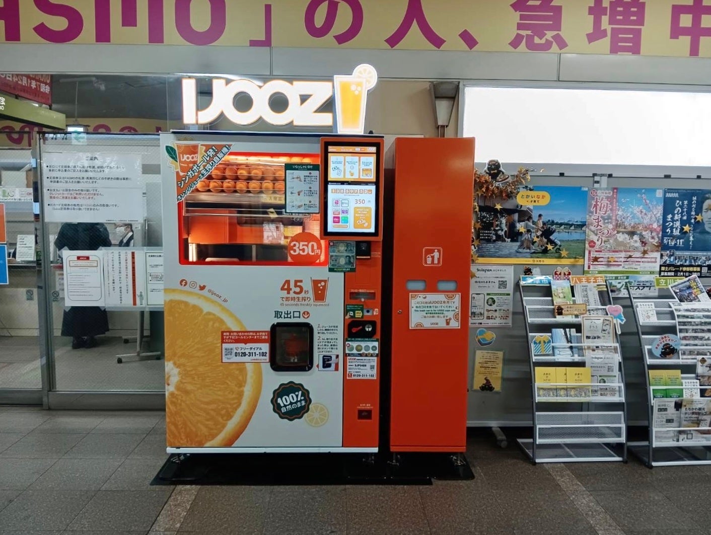 生搾りオレンジジュースの自動販売機を展開するIJOOZ(アイジュース)株式会社は、多摩都市モノレール線「立川北駅」改札外コンコースで、生搾りオレンジジュース自動販売機の稼働を開始しました。