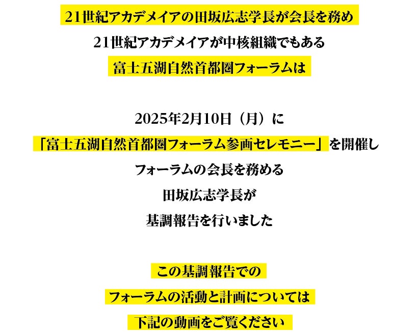 21世紀アカデメイアの田坂広志学長、「富士五湖自然首都圏フォーラム」にて、3つの国際コンソーシアムの活動報告。世界40か国の若者のアートエキスポ、水素社会実現の国際会議、官民連携先進行政を発表