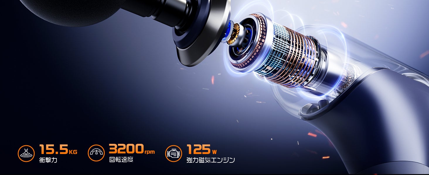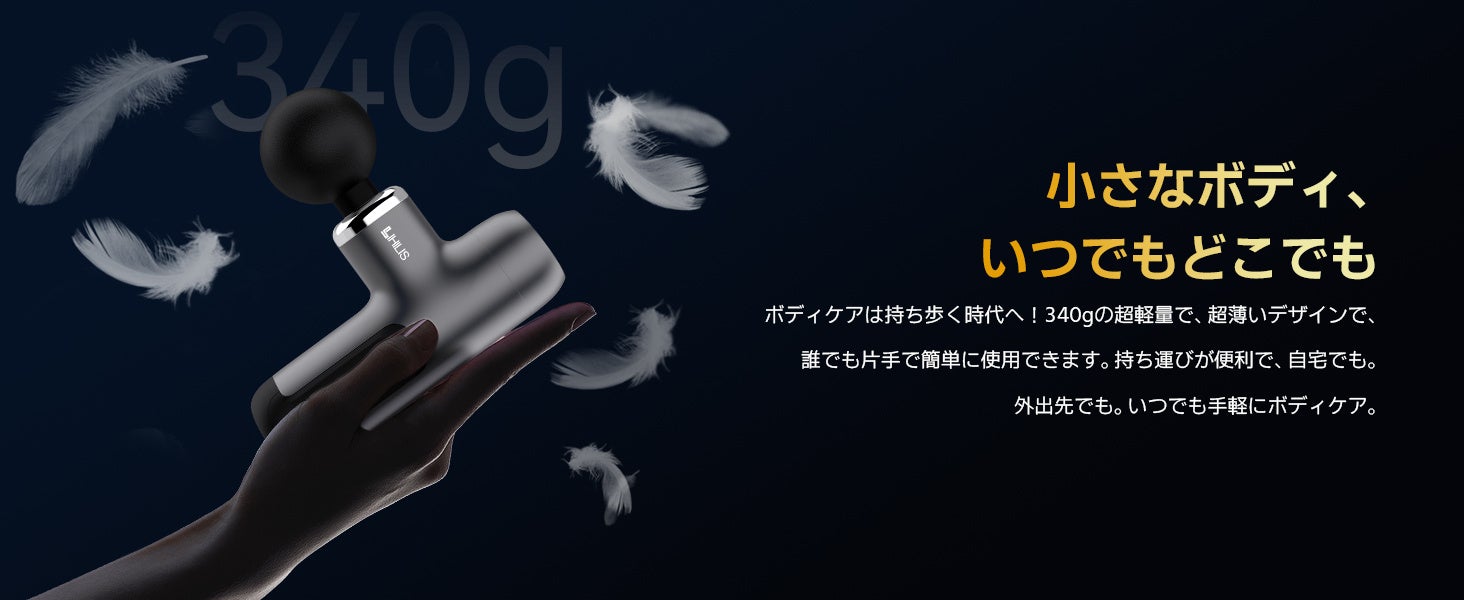 最先端のブラシレスモーターを採用し、8mmの振幅で深く作用します。340gの超軽量で、持ち運びに便利。シンプルなボタン操作で、振動強度を自動調整。12時間使用可能なバッテリーと20dbの静音設計が特長です。贈り物にも最適で、2年間の保証もついています。
