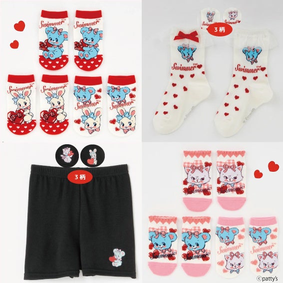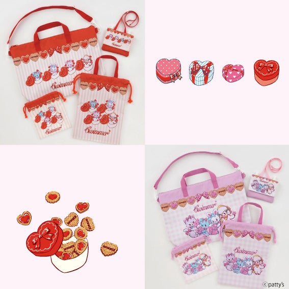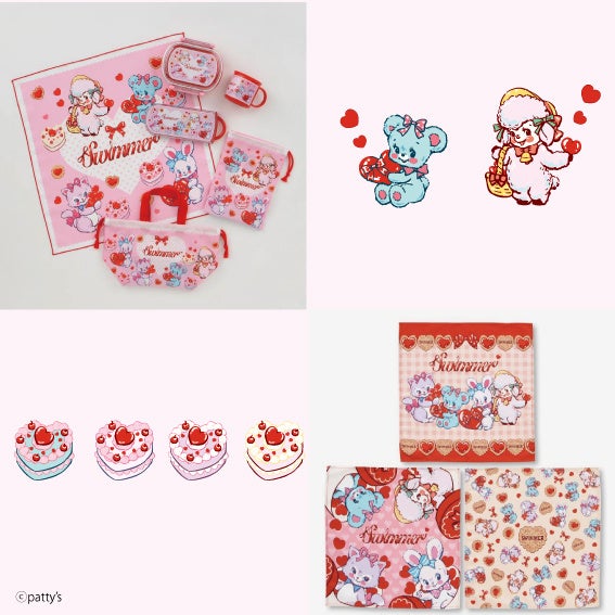くまの"ハグリー"、うさぎの"リバニー"、ねこの"キャミー"とハートマークが印象的なデザイン♡