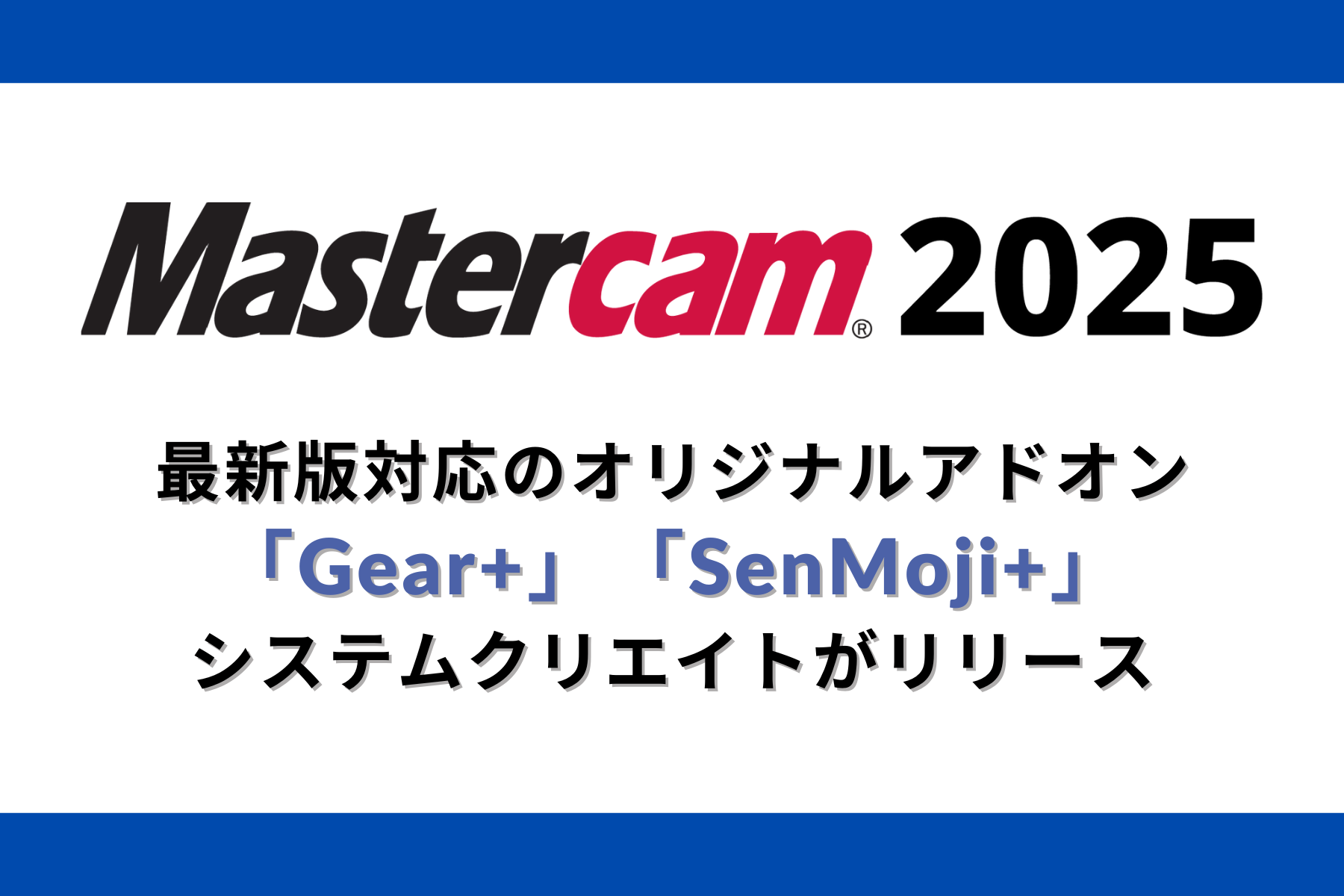 株式会社システムクリエイト(本社:大阪府東大阪市荒本新町、代表:川上正義)は、3DCAD/CAMソフトウェアである「Mastercam」の最新バージョンに、弊社オリジナルのアドオン機能「Gear+」と「SenMoji+」が対応したことをお知らせいたします。システムクリエイトでは、Mastercamの新規ライセンス及びソフト保守加入の特典として、これらのアドオンを無料で付与いたします。これらの機能により、ユーザーの作業効率がさらに向上し、設計の自由度が広がります。