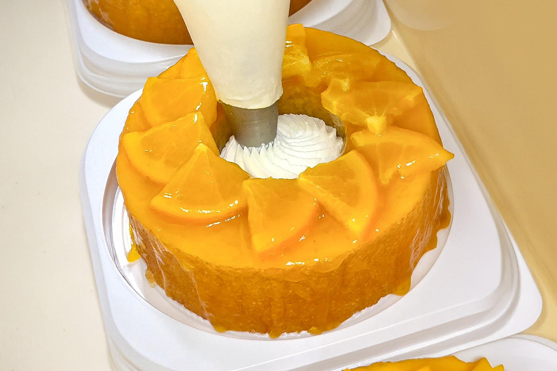 ケーキトレーにしっかりと収め、美味しさを閉じ込めて密封。