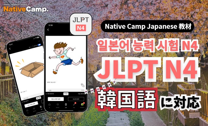 株式会社ネイティブキャンプ(本社:東京都渋谷区、代表取締役社長:谷川国洋)が提供するオンライン日本語会話サービス『Native Camp Japanese』は、このたび、教材「日本語能力試験N4」(JLPT N4)が韓国語に対応いたしました。