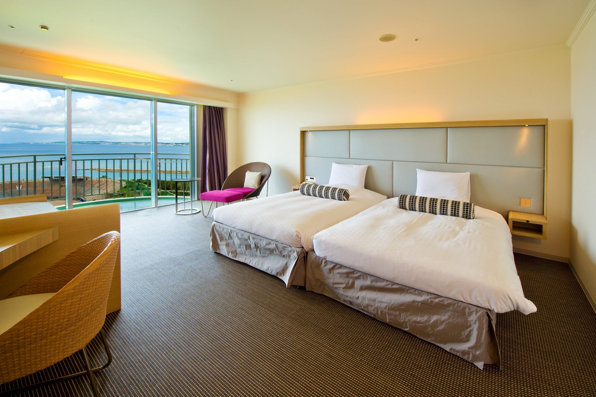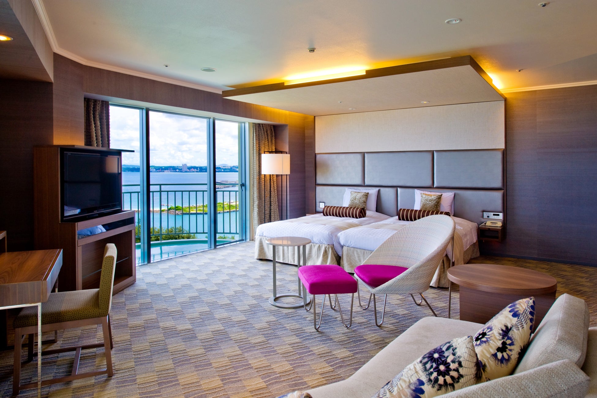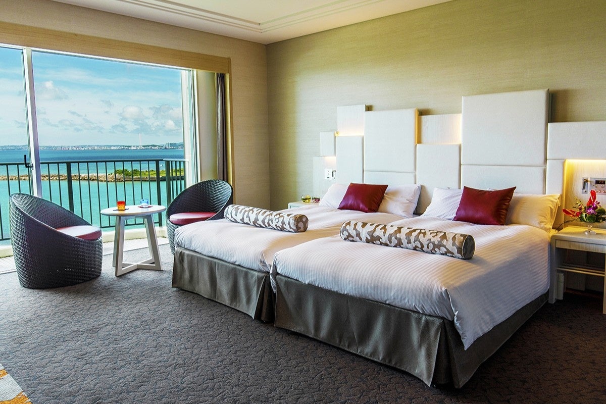 那覇市街や北谷へのアクセスに優れ、トロピカルビーチや沖縄コンベンションセンターにも近い、シティ&リゾートホテルです。広々としたラウンジや県内最大級のプールが開放感溢れ、オーシャンビューの客室からは東シナ海を一望。那覇空港から約30分で南国リゾート気分を満喫できます。