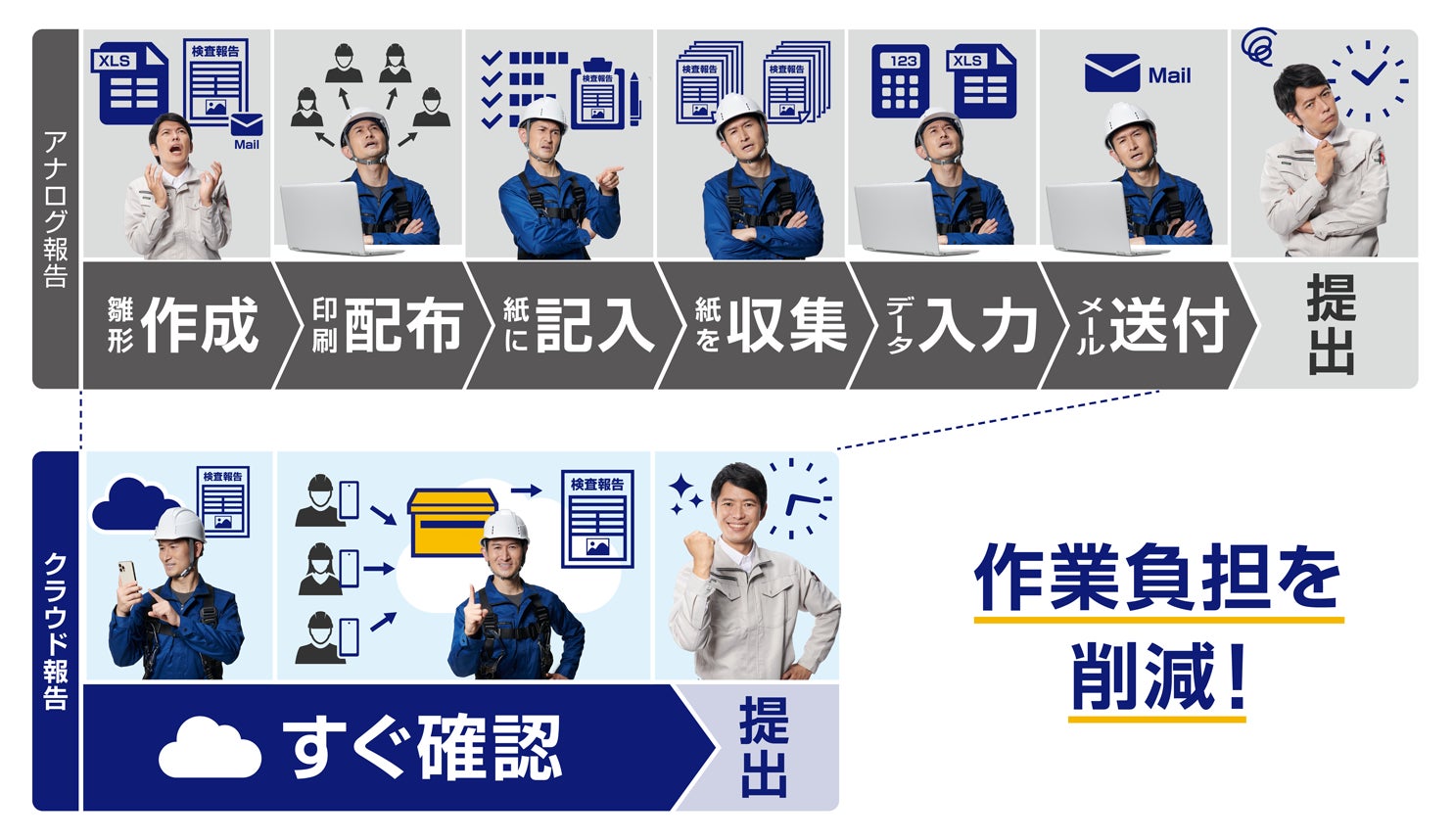 コンクリート工は、構造物の強度や耐久性を左右する重要な工事です。不可視の部分も多く、厳しい品質基準に合わせた検査が実施されています。しかしながら検査結果を紙伝票で管理する現場は、まだまだ多いです。事務所のパソコンで自社の検査報告書を作成、現場でプリントして作業員へ配布、作業員は検査結果を紙に書いて1日の終わりに提出。集めた紙伝票にある大量の検査結果をパソコンで入力するのは、非効率でミスも発生します。