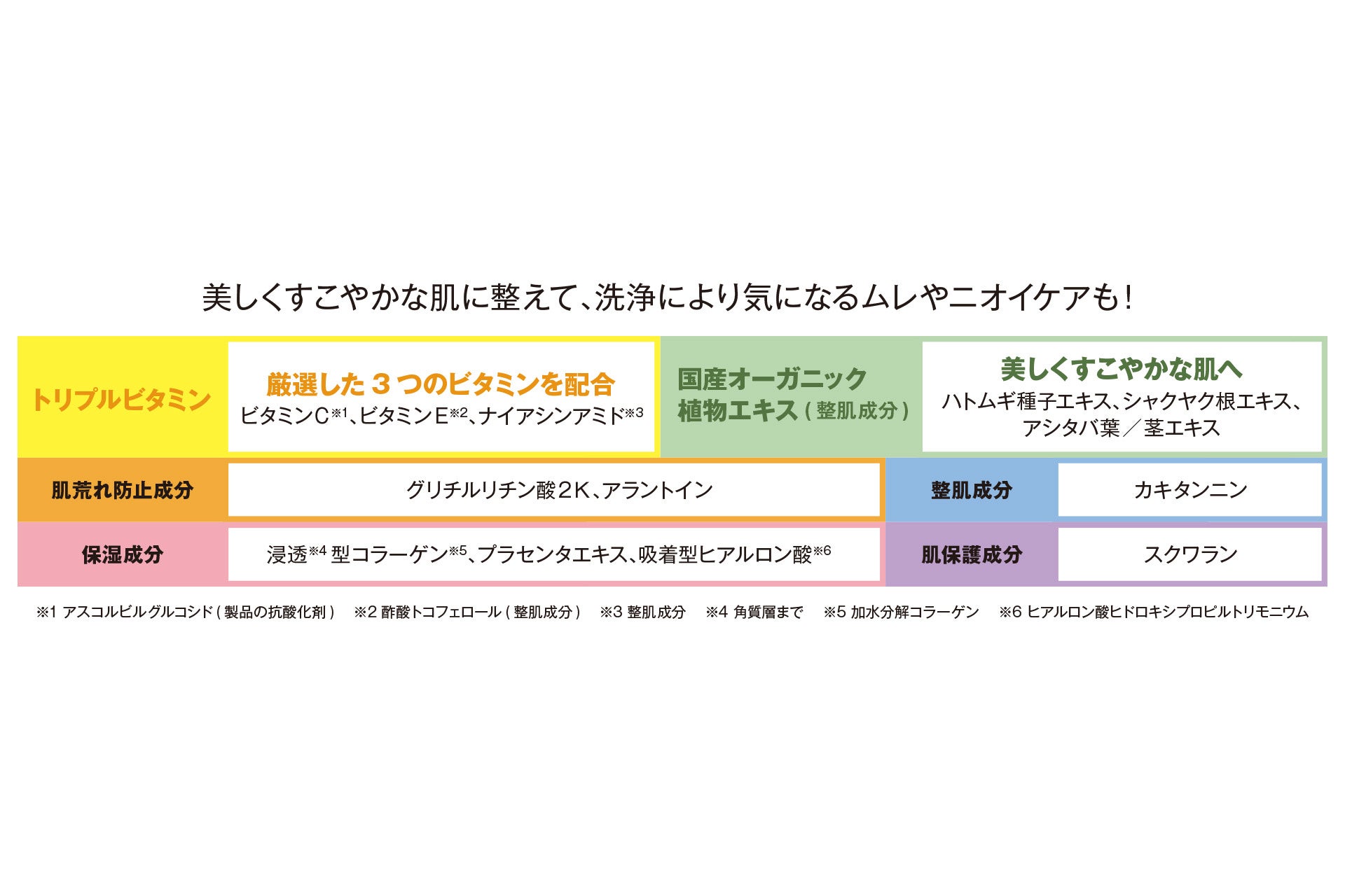 肌をすこやかに保ち、すっきりとしたうるおいのある洗い上がり。