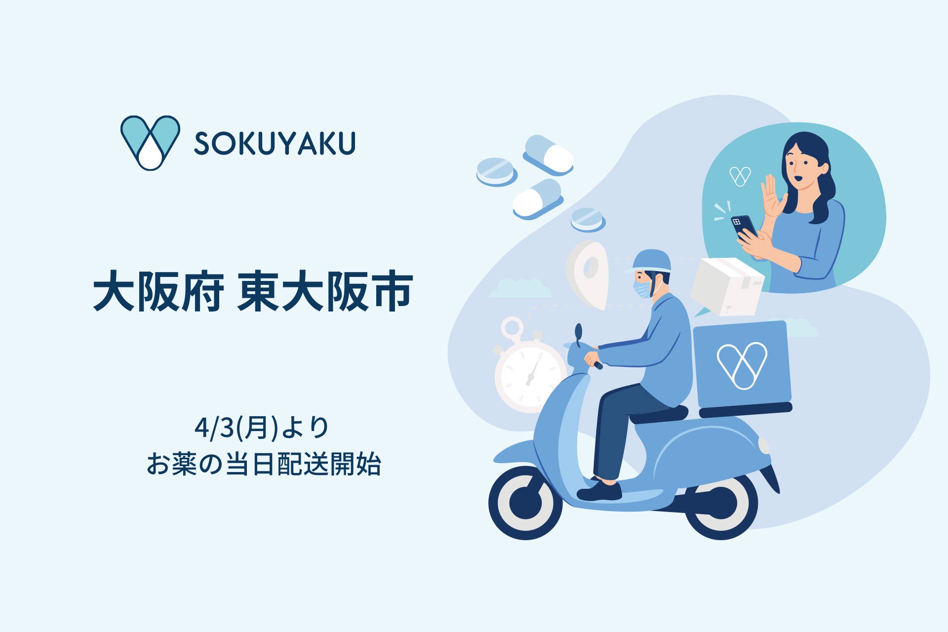 「SOKUYAKU」、東大阪市で処方薬当日配送サービスを提供開始 大阪市に続き大阪府内の対応エリアを拡大
