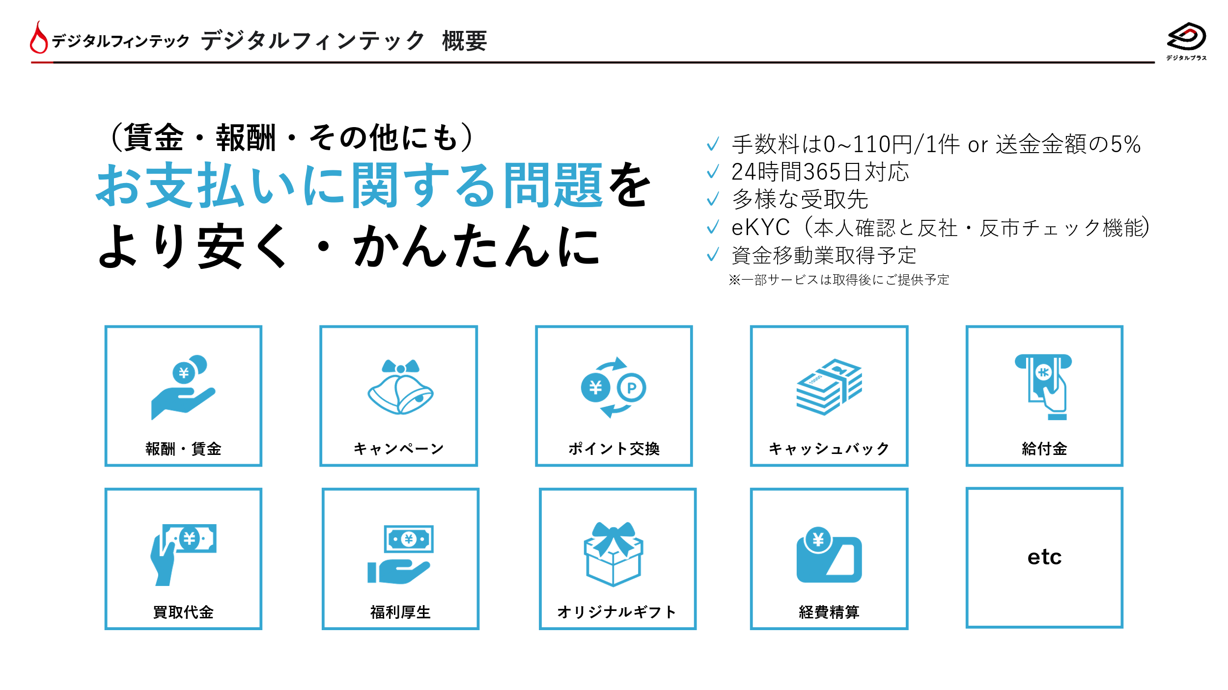 当社では、資金移動業を取得することにより、現在の提供領域に加え、報酬などの今まで対応できなかった対価性がある支払いと、犯罪収益移転防止法に準拠した送金に対応できるようになります。