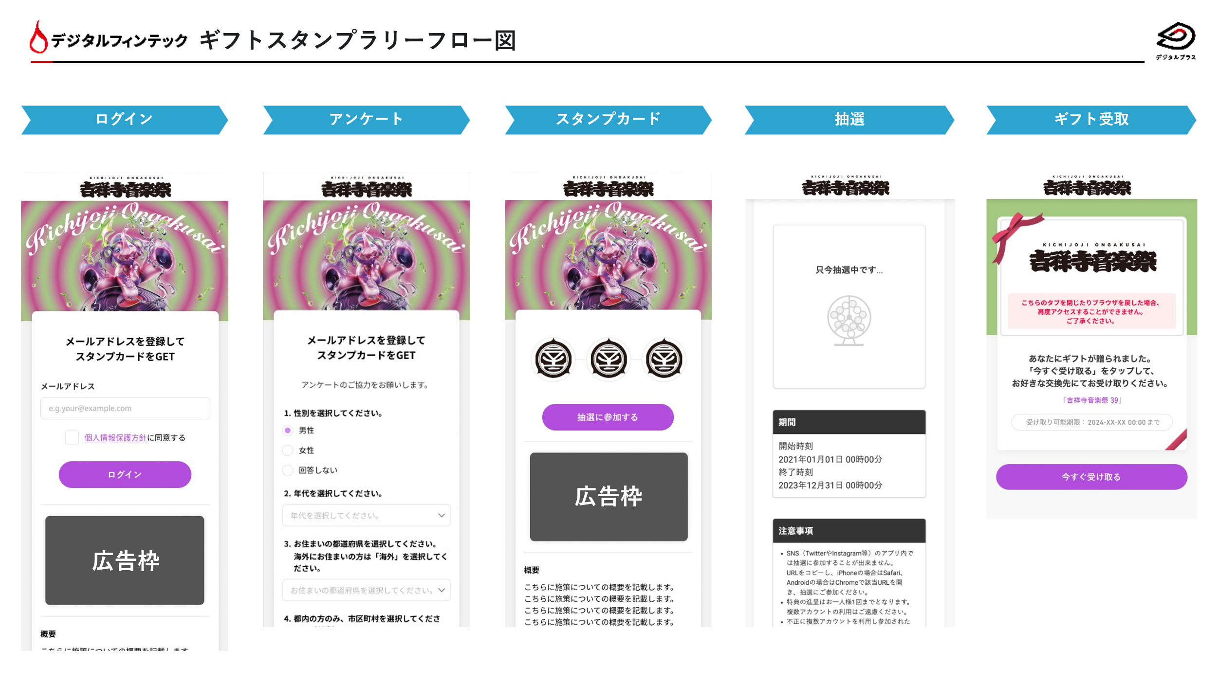 東京都武蔵野市の吉祥寺全域で実施する「吉祥寺音楽祭39」(対象スペースに来場されたお客様に対してスタンプを付与し、スタンプがたまると抽選でギフトが当たる施策)における、運用システムとして当社「デジタルギフト®」が採用されました。
