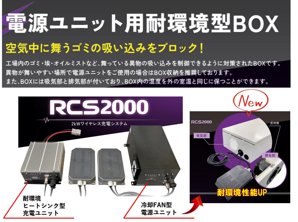 最大パワー2kWで悪環境も電源ユニット用耐環境BOXで対応可能!!