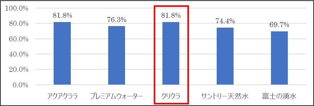 ▲「水の安全性」において、81.8%で「クリクラ」と「アクアクララ」が同率で1位。3位は76.3%で「プレミアムウォーター」となりました。