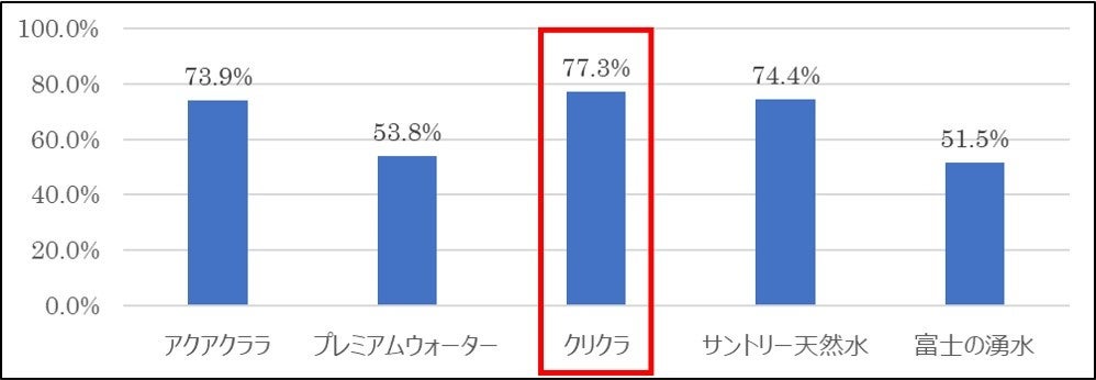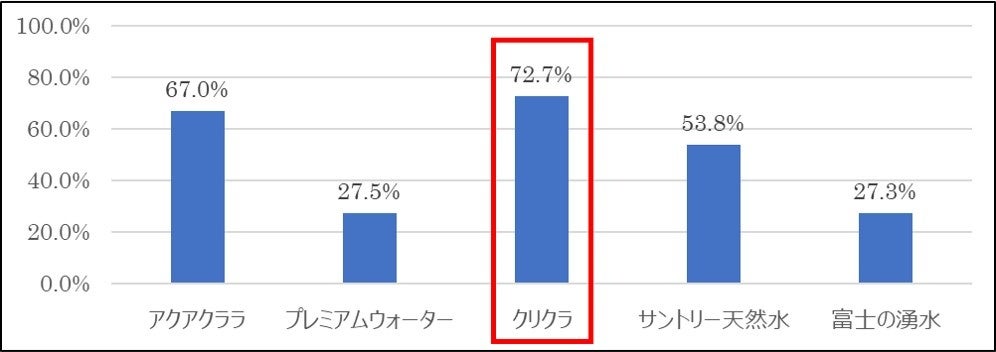 ▲「メンテナンスサービス」において、72.7%で「クリクラ」が1位。2位は67.0%で「アクアクララ」、3位は53.8%で「サントリー天然水」となりました。