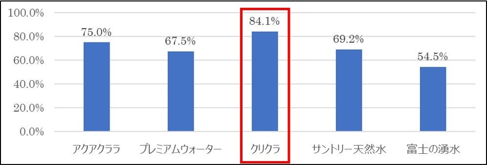 ▲「ウォーターサーバーの安全性」において、84.1%で「クリクラ」が1位。2位は75.0%で「アクアクララ」、3位は69.2%で「サントリー天然水」となりました。