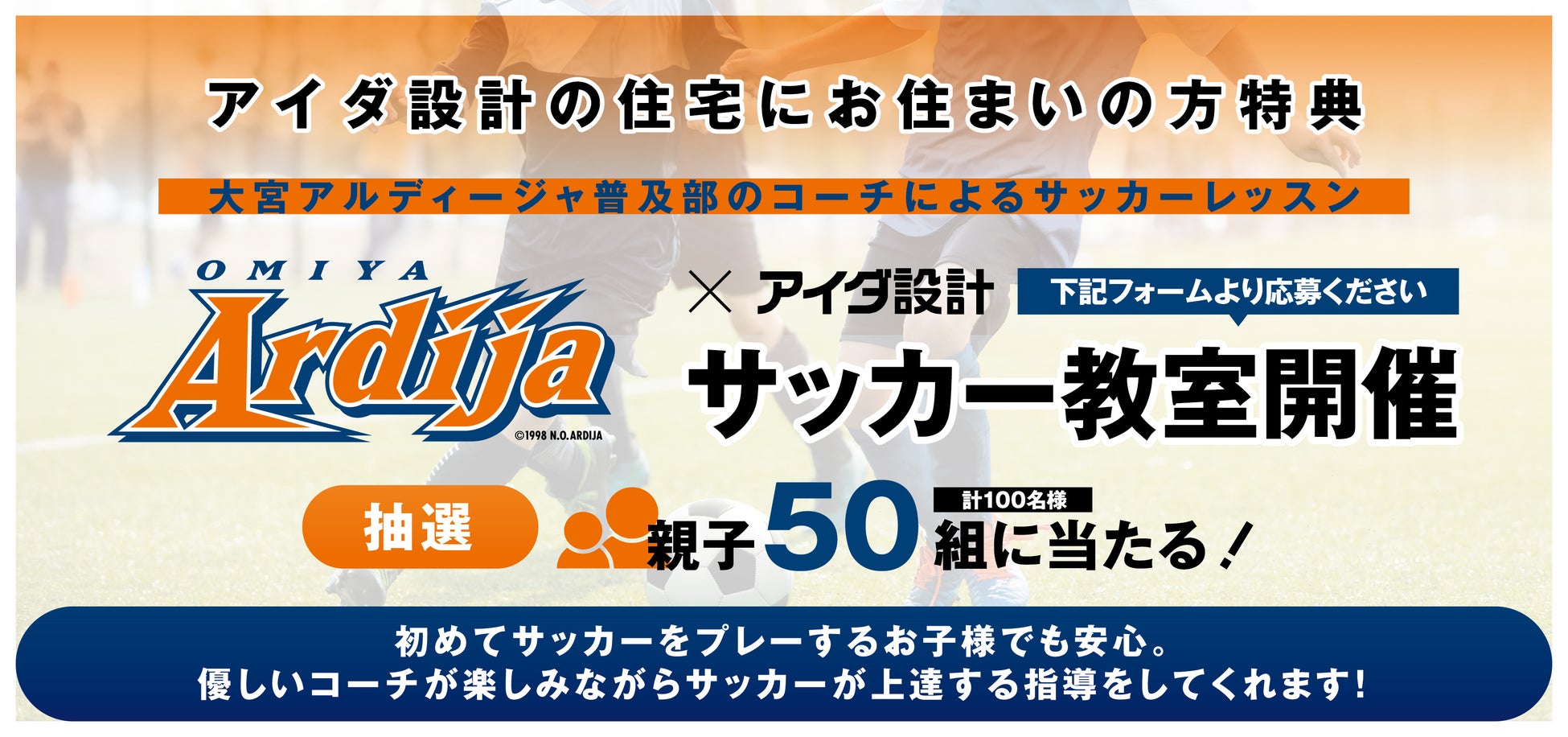 アイダ設計の住宅オーナー様向け アイダ設計&大宮アルディージャ サッカー教室参加者募集のお知らせ