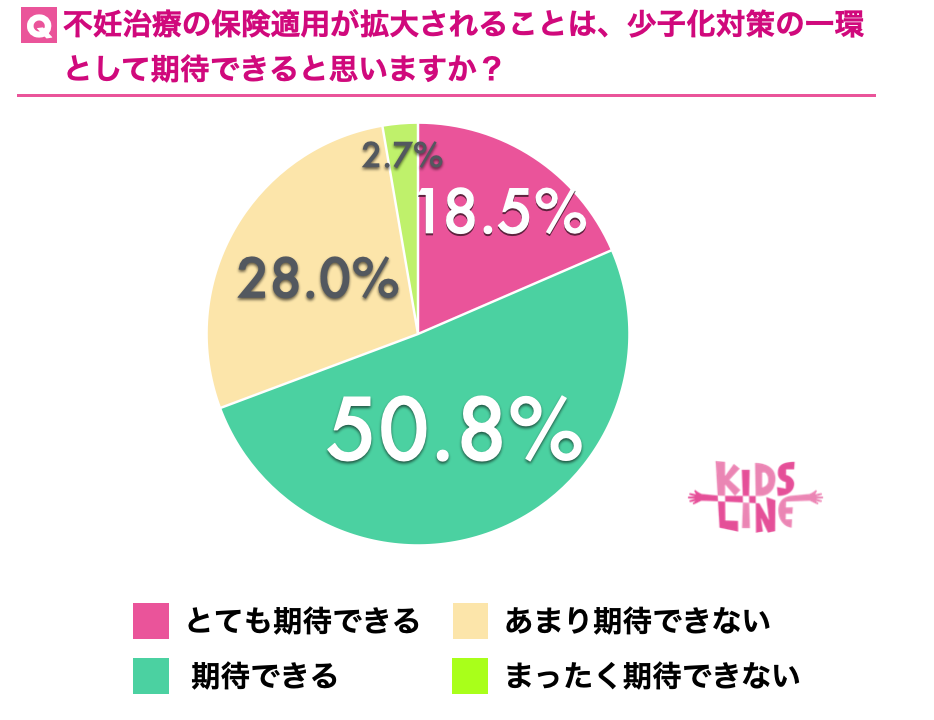 保険適用の拡大が金銭的な軽減、治療に対する前向きな気持ちになると考える人もいる中で、実際には産んだ後の子育てに対する不安の声など、不妊治療が少子化対策への期待に通ずるものではないと考える人もいることがわかりました。