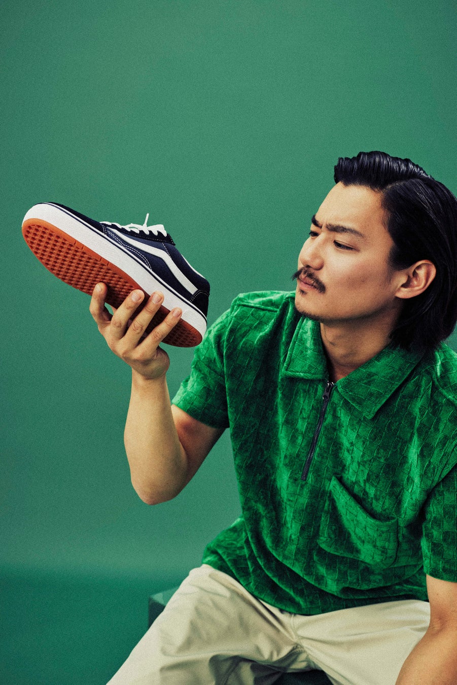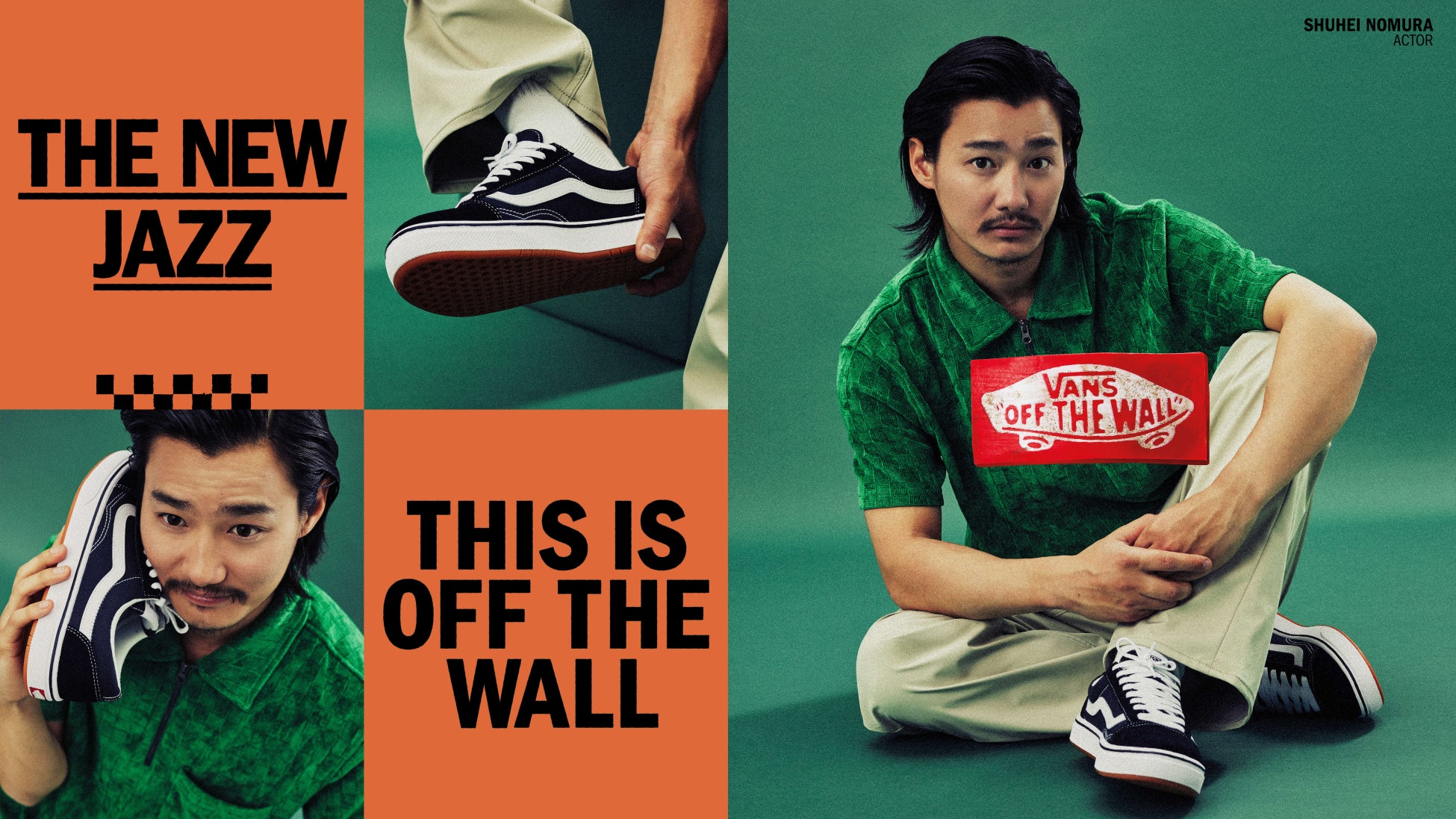 また、6月にスタートしたブランドキャンペーン「THIS IS OFF THE WALL」に出演した俳優・野村周平がキービジュアルに再び登場。ユーモア溢れるポージングでV2000. NEW JAZZを着用しています。