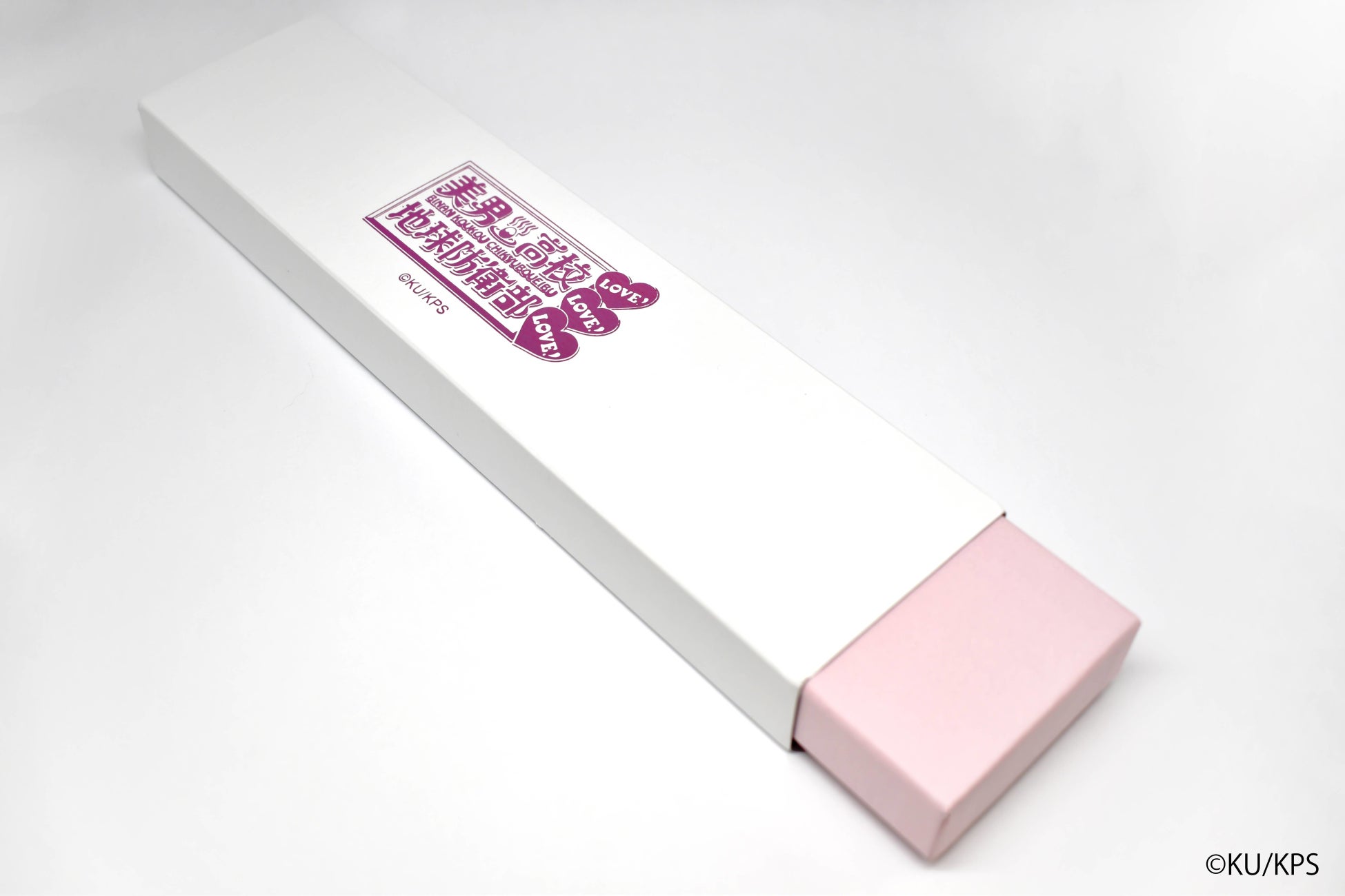専用化粧箱は白いスリーブに淡いピンク色のBOX。そこにタイトルロゴを箔押しして仕上げてあります。