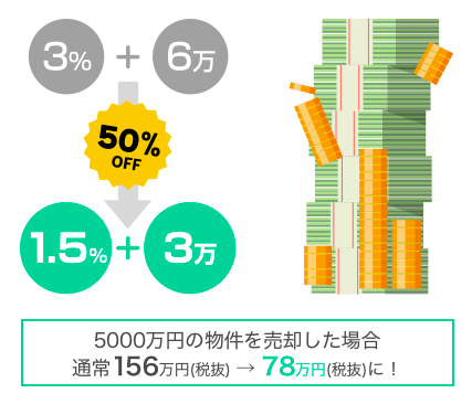カウルから中古マンションの購入・売却された場合、仲介手数料が半額の「物件価格の1.5%+3万円(税別)」になる「手数料半額プラン」があります。