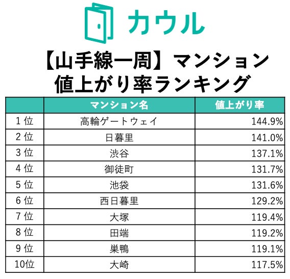 【カウル調査】マンション価格、山手線全駅でどこが一番値上がった?!1位は「高輪ゲートウェイ駅」