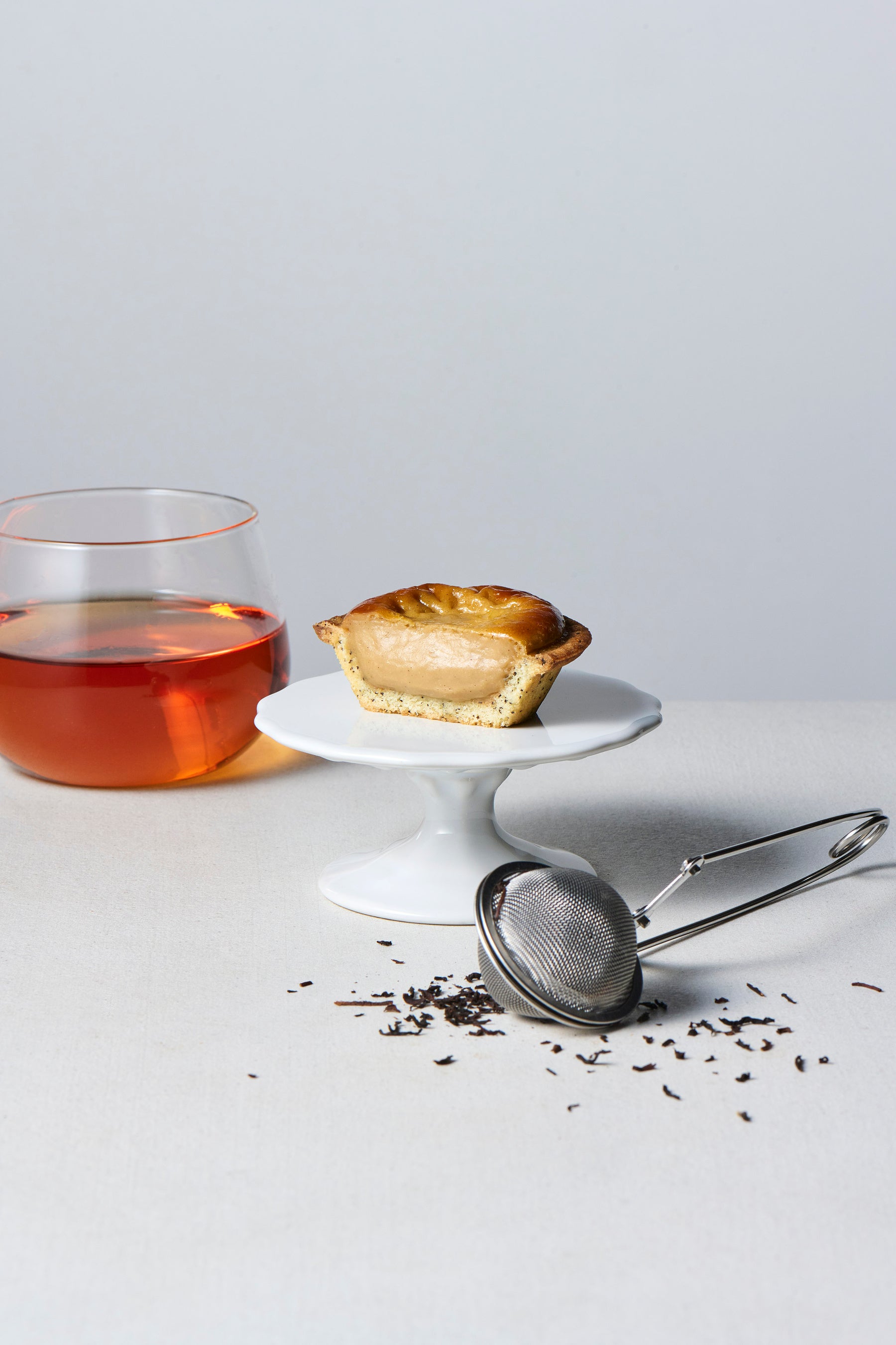 チーズムースにはアールグレイパウダーを配合し、タルトカップにはアールグレイ茶葉を使用。柑橘の香りが爽やかなチーズタルトに仕上げました。箱を開けた瞬間からふわっと香りが華やぐ、上品で贅沢な味わいをお楽しみください。