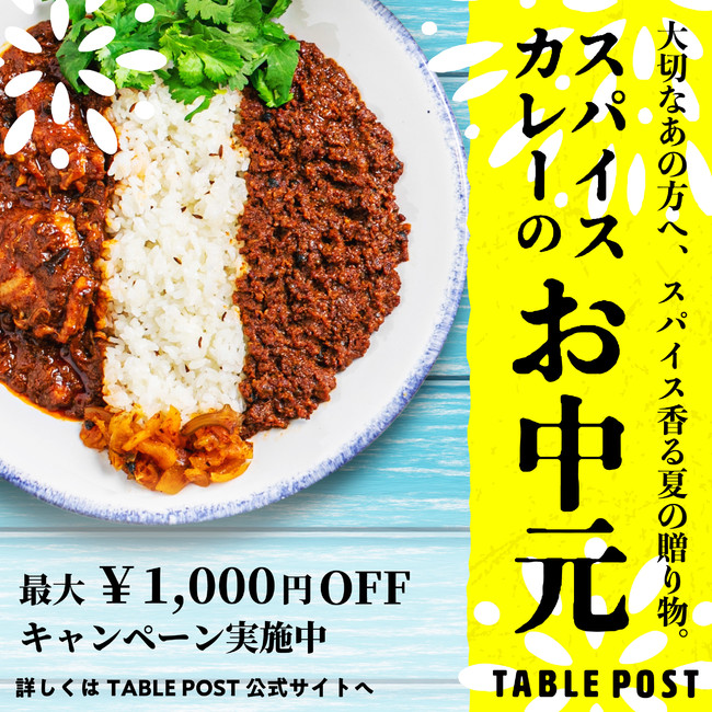 株式会社TBI JAPAN(本社:東京都新宿区、代表取締役社長:後藤 浩之)が運営する、”家飲み”や”おうちグルメ”など、飲みの場の新しいシーンを提供するお取り寄せグルメサイト『TABLE POST』(https://table-post.com)にて、【夏ギフト・お中元/早割キャンペーン】として、ウーバーイーツでも大好評の『一条もんこ先生のカレー診療所』のレトルトカレーが最大1,000円引きとなるキャンペーンを、2021年6月9日(水)~7月31日(土)の期間限定で実施いたします。