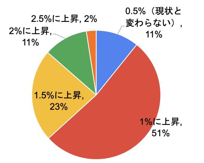 1%に上昇すると考えている人が半数との結果になりました。「現状維持」〜「1.5%に上昇」までを合算すると、85%のユーザーとなりました。