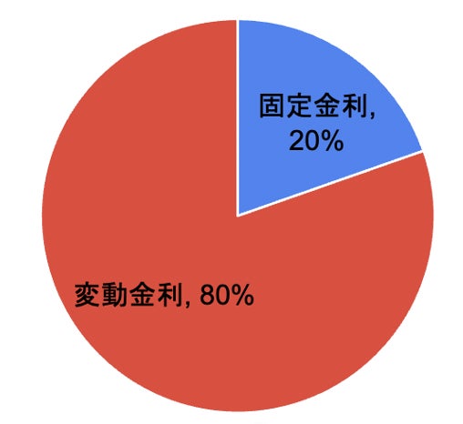 80%のユーザーが変動金利と回答しています。この2月以降、固定金利が上昇しているため変動と固定の金利差が拡大しています。高金利(1.45%※)の固定金利よりも、低金利(0.44%※)の変動金利のほうが人気は根強いようです。