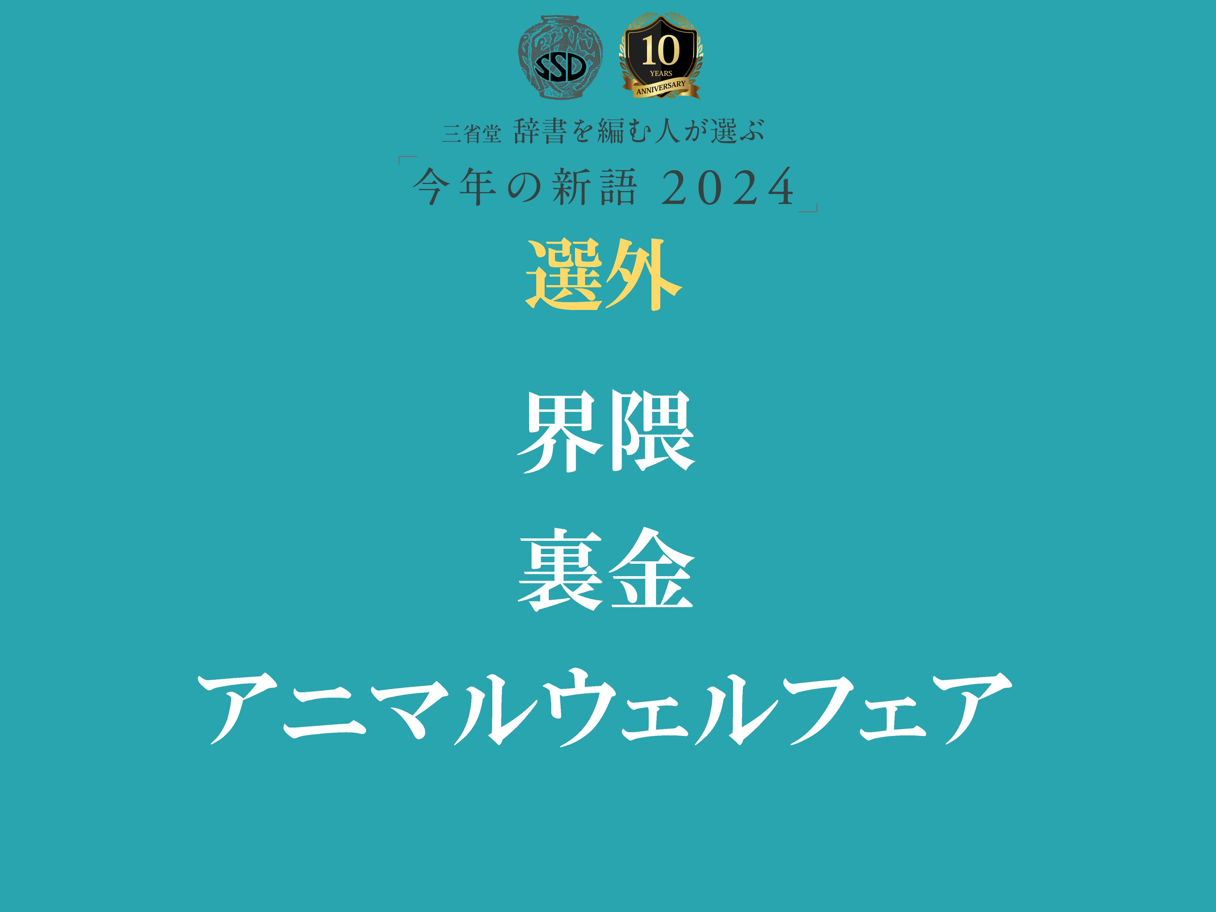 上記の10語以外に、惜しくもランキング入りを逃した語として「界隈」「裏金」「アニマルウェルフェア」3語が選ばれました。