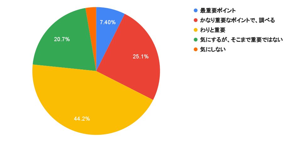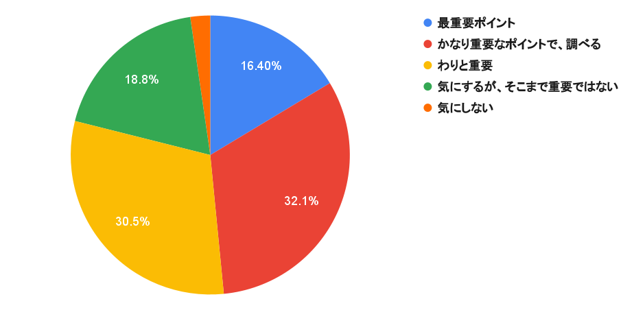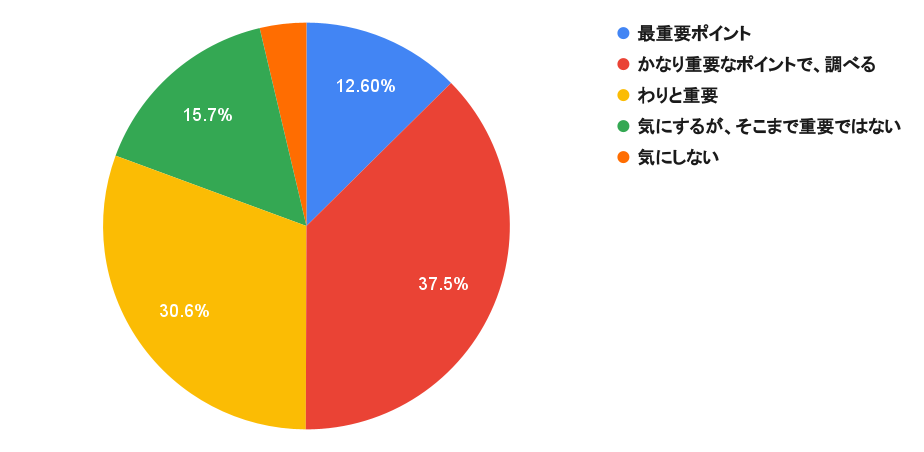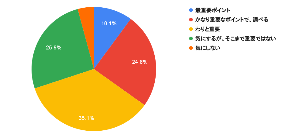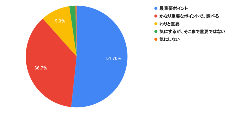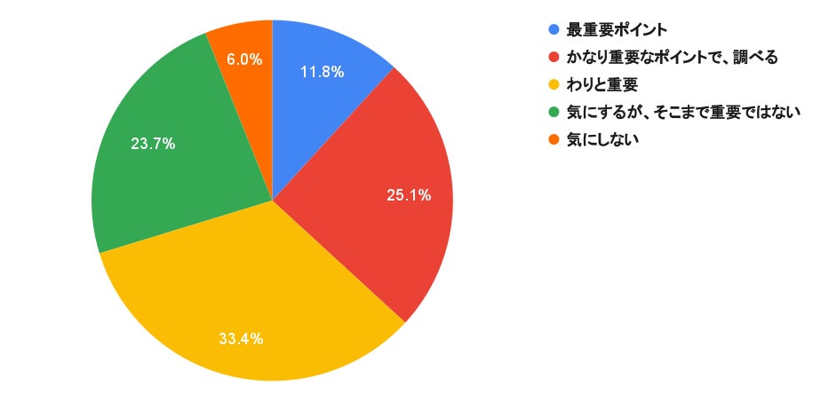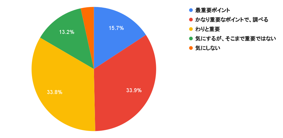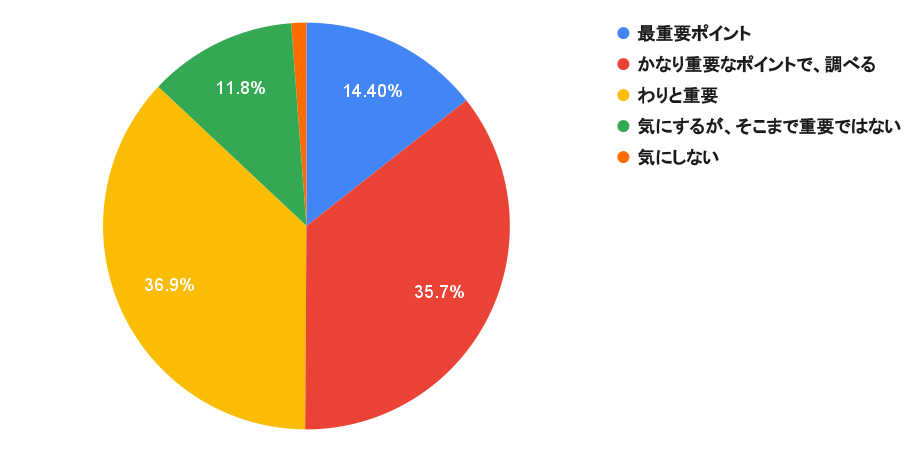 「最重要ポイント」「かなり重要なポイントで、調べる」「わりと重要」と回答した人を合わせると79%となっており、お出かけ先を決めるうえで重要なポイントと考える家庭が多くなっています。