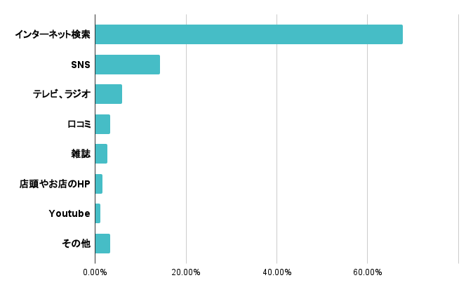 お出かけ先の情報は、「インターネット検索」で仕入れているという人が67.76%で最も多い結果となりました。次に多かったのは、「SNS」で14.20%でした。
