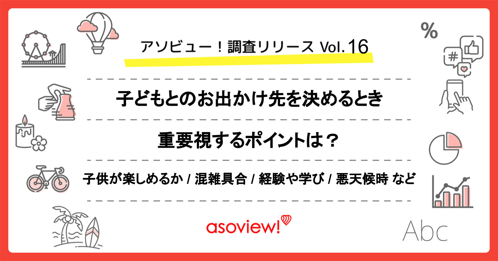【アソビュー!調査リリース】子どものお出かけ先を決めるとき、重要視するポイントは? 子供が楽しめるか / 混雑具合 / 経験や学び / 天気が悪くても楽しめるか などパパママが気にするポイントを調査