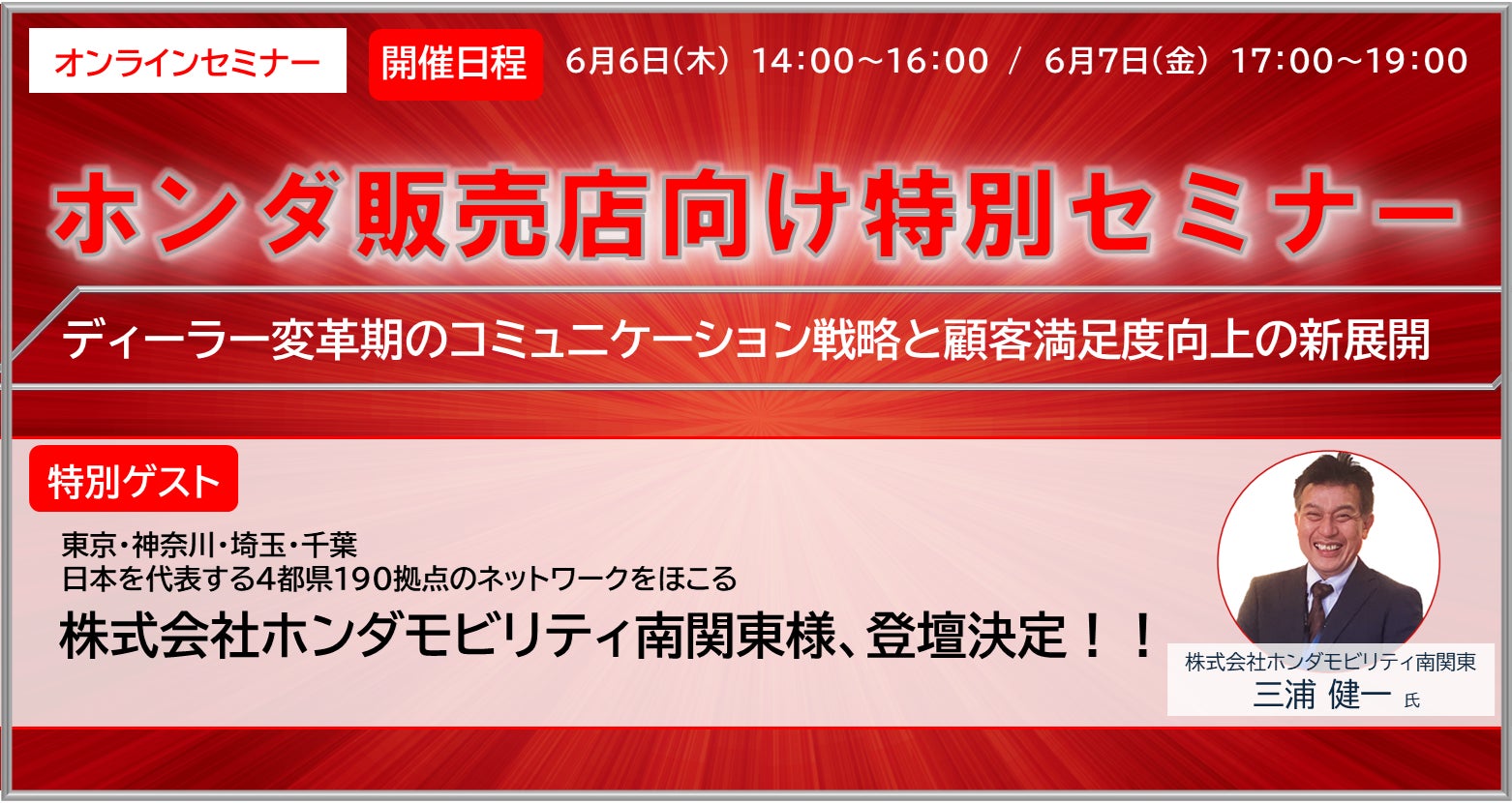 「株式会社ホンダモビリティ南関東様」登壇!6/6、6/7 二日間開催のホンダ販売店向け特別セミナーディーラー変革期のコミュニケーション戦略と顧客満足度向上の新展開
