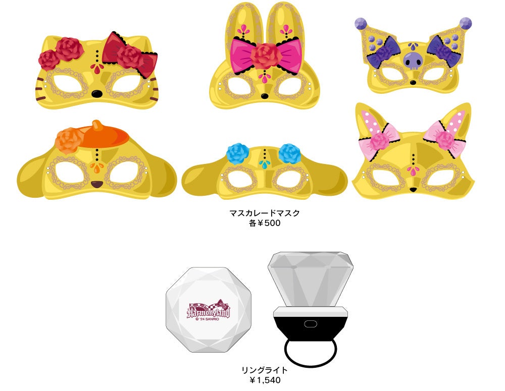 期間中は、ハーモニービレッジにて期間限定のライブショー『Magical Masquerade~EXCITE!~』を上演します。ステージに登場するのは、仮面をつけた華やかなコスチュームのハローキティたち。妖しくカッコよく、そして不思議な仮面舞踏会で、ハローキティたちと一緒に盛り上がる「超参加型」ライブショーをお届けします。ショー参加グッズのマスカレードマスクとリングライトをつけてご参加いただくとよりお楽しみいただけます。