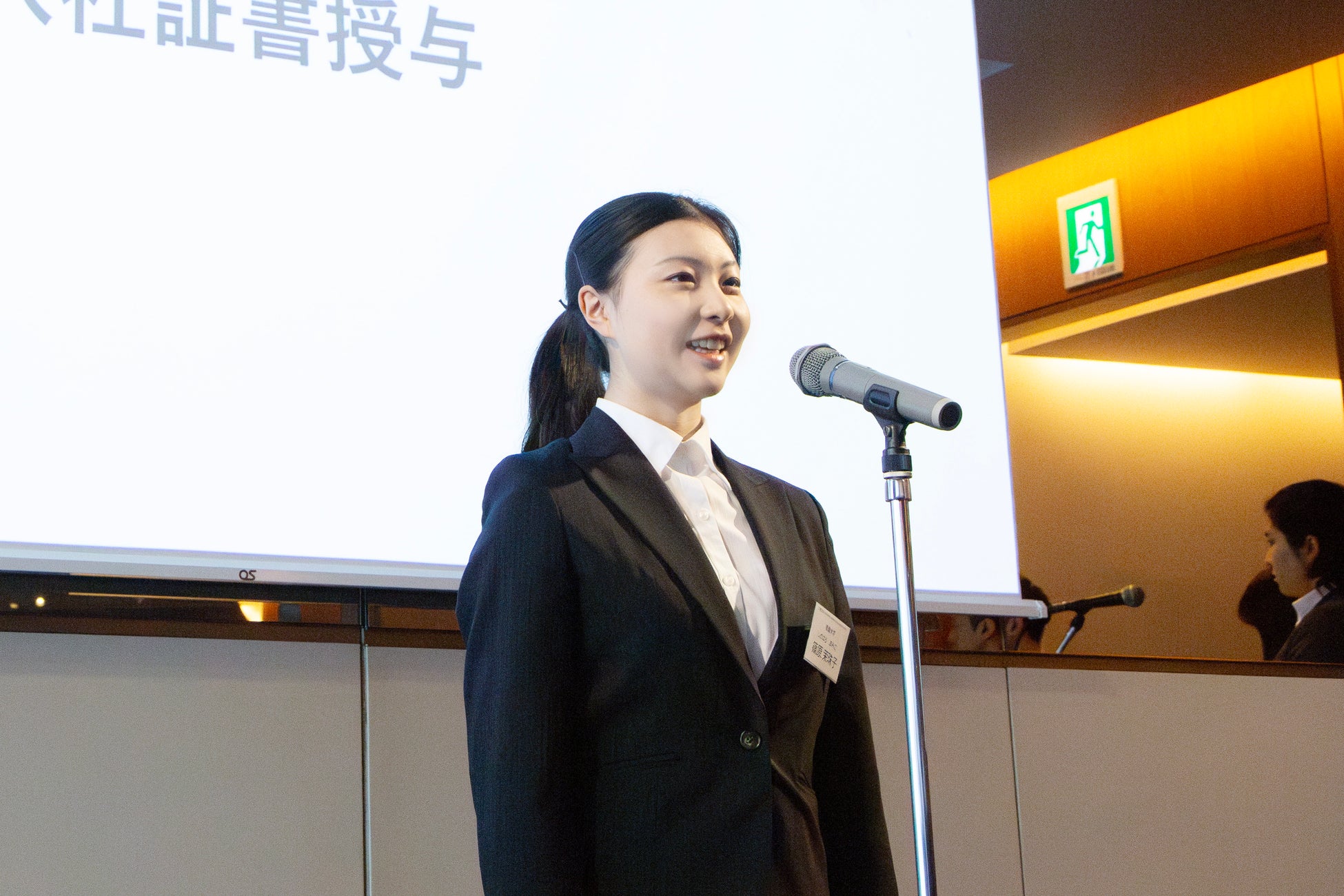 25新卒代表あいさつを行った篠原さんは、デジタルデータソリューションのフィロソフィーについて、「印象に残ったのは『考働』という言葉です。私たちはただ考えるだけでなく、考えて周りに働きかけるような社会人になりたいと思っています。」と抱負を述べました。