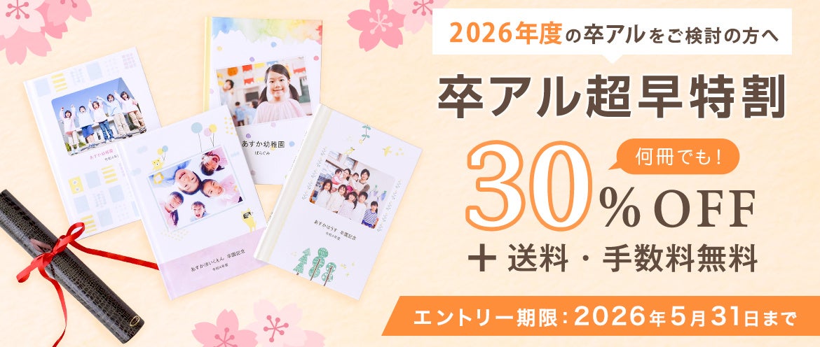 2026年度の卒アル(卒業アルバム)をご検討のご担当者さまへ、オトクに卒園・卒業アルバムをご注文いただけるキャンペーンを実施中です!