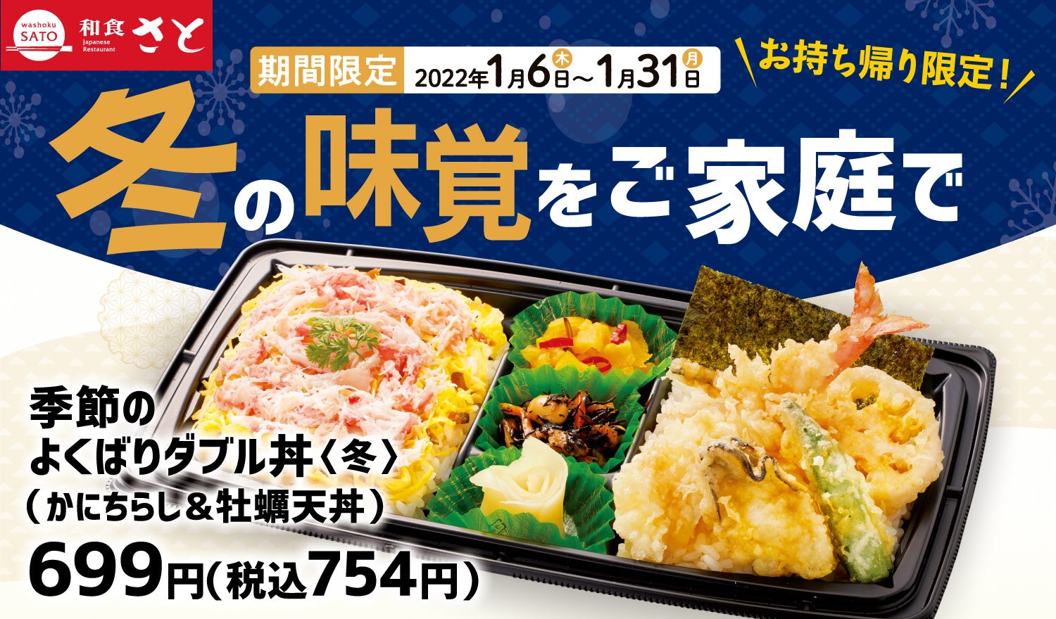 - 和食さとでは、1月6日(木)より冬の味覚たっぷりの新テイクアウトメニューを販売します。