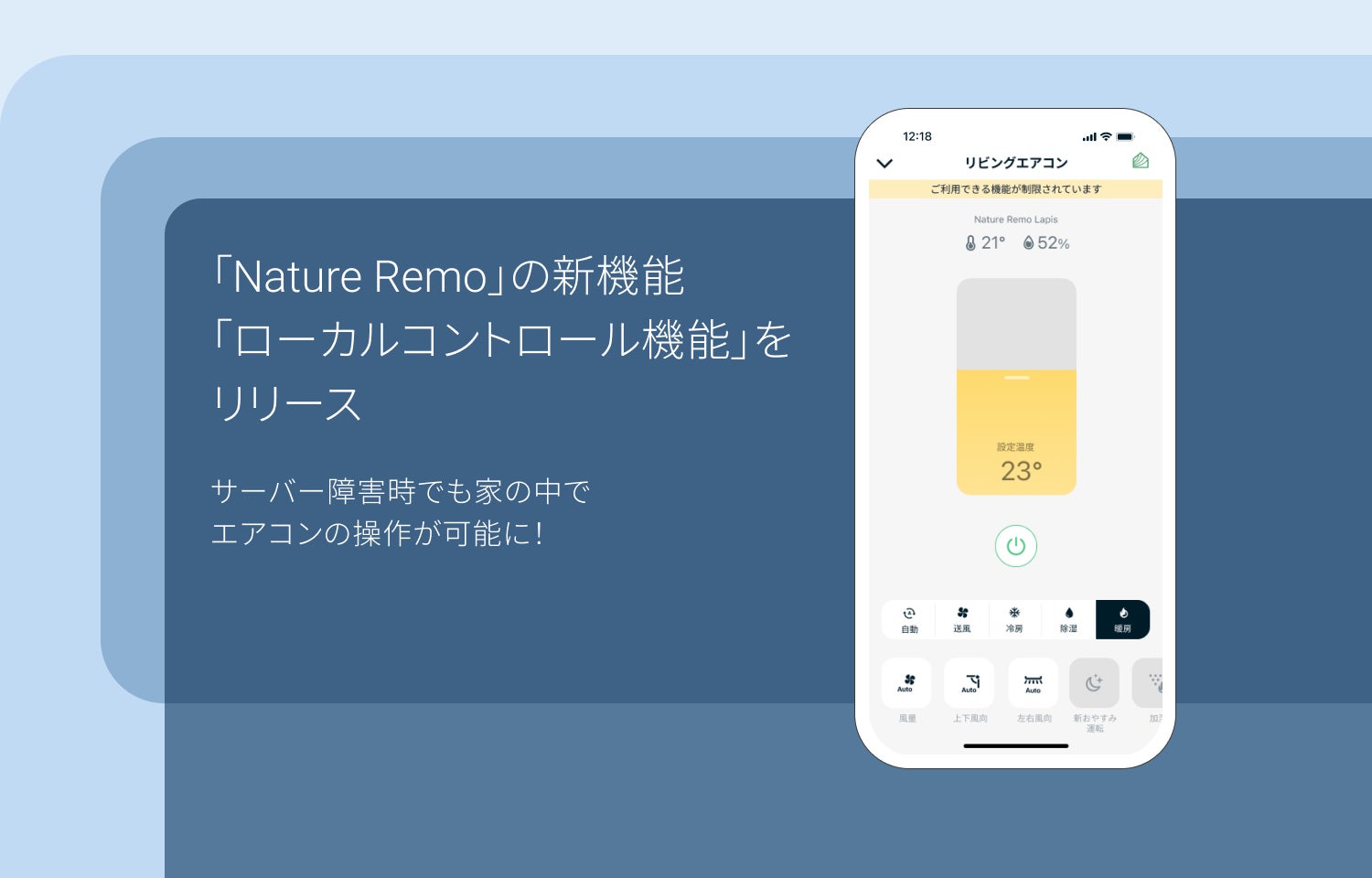 「自然との共生をドライブする」をミッションに掲げるNature株式会社(所在地:神奈川県横浜市、代表取締役:塩出 晴海、以下「Nature」)は、2025年2月12日(水)より、スマートリモコン「Nature Remo」シリーズで、サーバーの障害時にも自宅内でエアコンの操作を可能にする「ローカルコントロール機能」の提供を開始しました。本機能により、サーバーに障害が発生・ダウンしている間でも、お使いのスマートフォンを「Nature Remo」と同じWi-Fiネットワークに接続することで(※1)、エアコンの基本操作が可能になります。今回のアップデートでは「Nature Remo Lapis」が本機能に対応し、2025年3月末までに「Nature Remo 3」および「Nature Remo mini 2 / Premium」の対応を予定しています。
