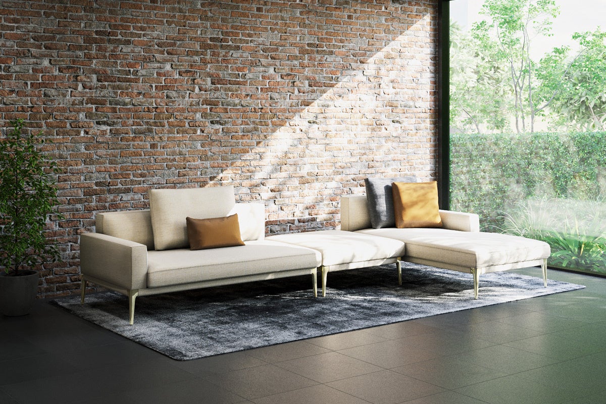 CRANAは、長い脚と細い木製フレームで構成されたスタイリッシュなソファで、オーダーシステムの強みを活かし、一体型でありながら木と真鍮の脚を選ぶことができるのが特徴です。木脚は北海道で最先端の木工切削技術を持つ株式会社山上木工(津別町)が、真鍮脚は富山県の鋳物メーカー株式会社能作(高岡市)が手掛け、それぞれが優美なフォルムを作り出し、ソファ全体に柔らかさと上質感を与えています。デザインはKAICHI DESIGNの山田佳一朗氏。