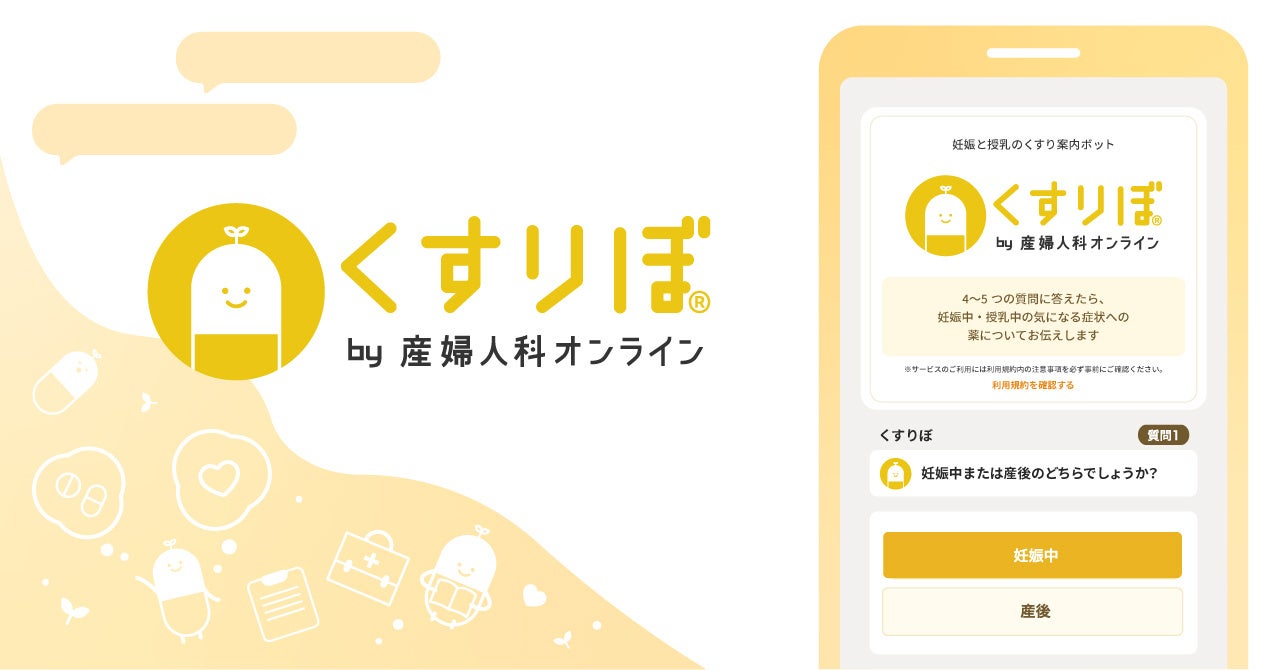 「産婦人科オンライン」「小児科オンライン」は、これまでオンライン相談により寄せられた8万件以上の相談データを分析し、妊娠中・授乳中の状況を踏まえた薬の情報検索ができるシステムを構築しました。これが「妊娠と授乳のくすり案内ボット (くすりぼ)」です。