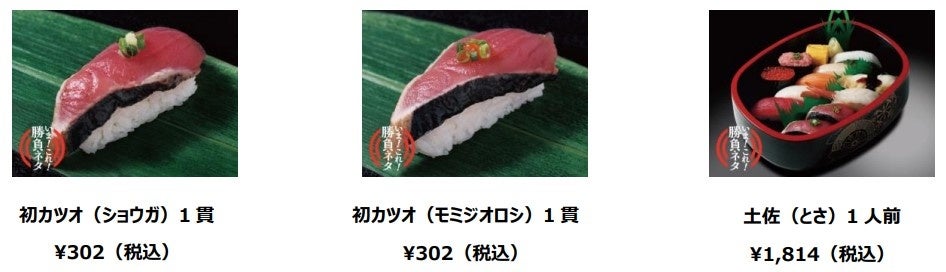 公式WEBサイト(https://www.ginsara.jp/)限定販売商品として、高知県産『初カツオ』を2種類の薬味が選べる単品と、各1貫ずつ(トッピング2種)使用した『土佐(とさ)1人前』の3商品を販売します。