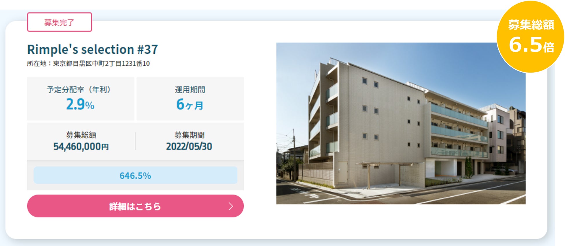Rimple’s Selection#37募集総額646.5%の3.5億円の応募