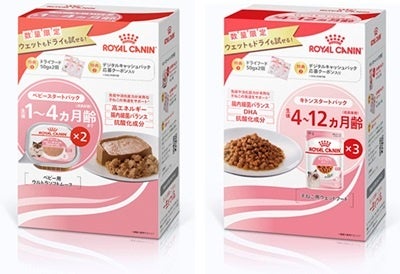 春は1年で最も多く子猫が産まれる季節であり、近隣や知人の方から新たに子猫を迎えるペットオーナーも増加します。今回のスタートパックは、ロイヤルカナンが展開する子猫期製品をより多くのペットオーナーに知っていただき、お試しいただけるよう、成長前期の子猫専用「ベビー スタートパック」、成長後期の子猫専用「キトン スタートパック」の2種類を数量限定にて発売します。