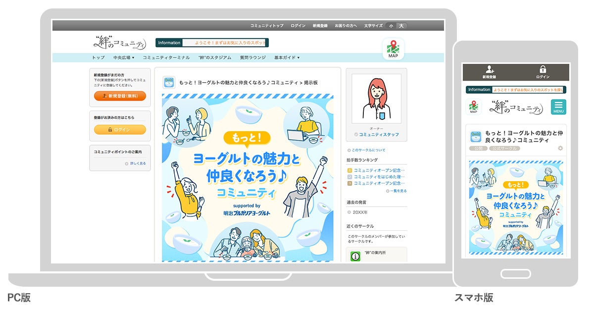「もっと!ヨーグルトの魅力と仲良くなろう♪コミュニティ」は、会員登録無料で誰でも参加できるファンコミュニティです。参加者は、「ヨーグルト」をテーマに楽しくコミュニケーションすることを通して、他の参加者の食べ方や選び方のこだわりを知ったり、食や健康に対する価値観に触れたり、ヨーグルトの魅力を再発見することができます。