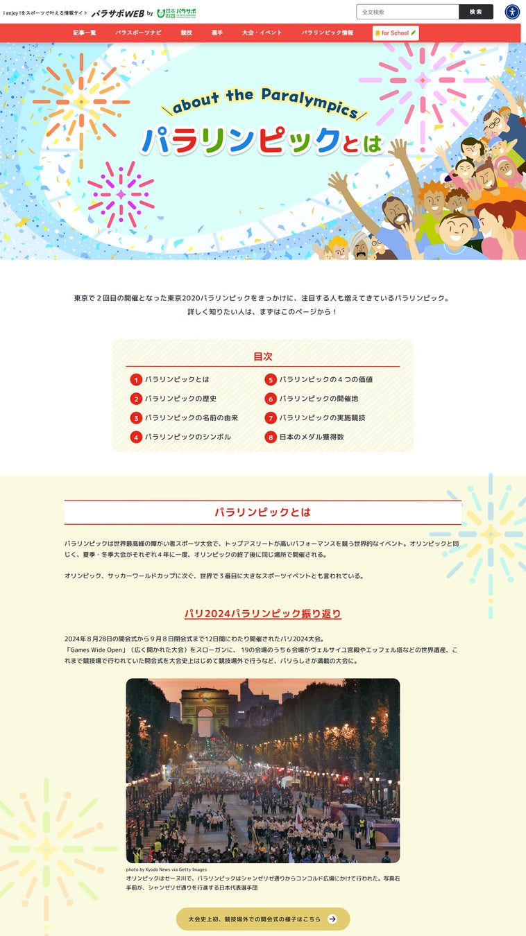 子どもたちのパラリンピックやパラスポーツを「知りたい!」に応えるために 調べ学習に役立つコンテンツが一目でわかる、まとめページをオープン!