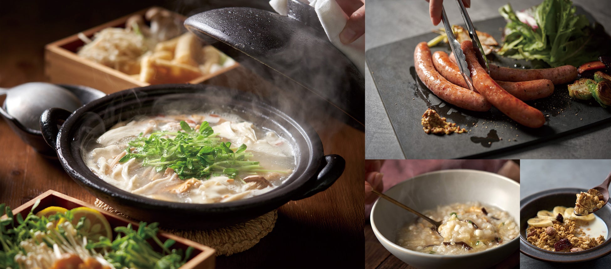 美養素材入りの鍋料理や当社オリジナルのブランドポークなど、「くらすわ」の人気グルメが冬ギフトセットに。