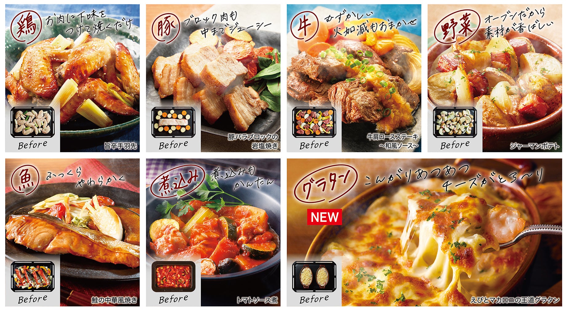 1. 材料を並べて焼くだけの自動調理「石窯おまかせ焼き」に、定番もアレンジも自由に楽しめるグラタンコースを追加