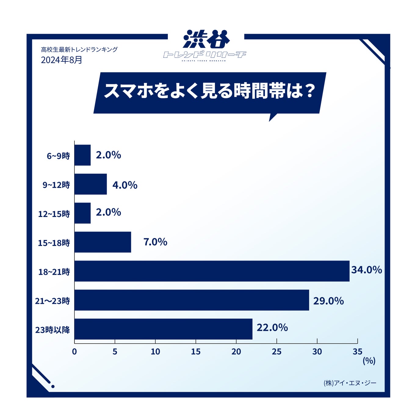 高校生の85%以上が学校や部活などが終わる18時以降にスマホを見ると回答。通っている高校により、スマホの持ち込み自体は許可されているものの授業中は先生に預けるルールや、学校にいる間の利用は許可されていない学校もあることから、学校にいる間はスマホの利用が少ない子が多いのではないでしょうか。