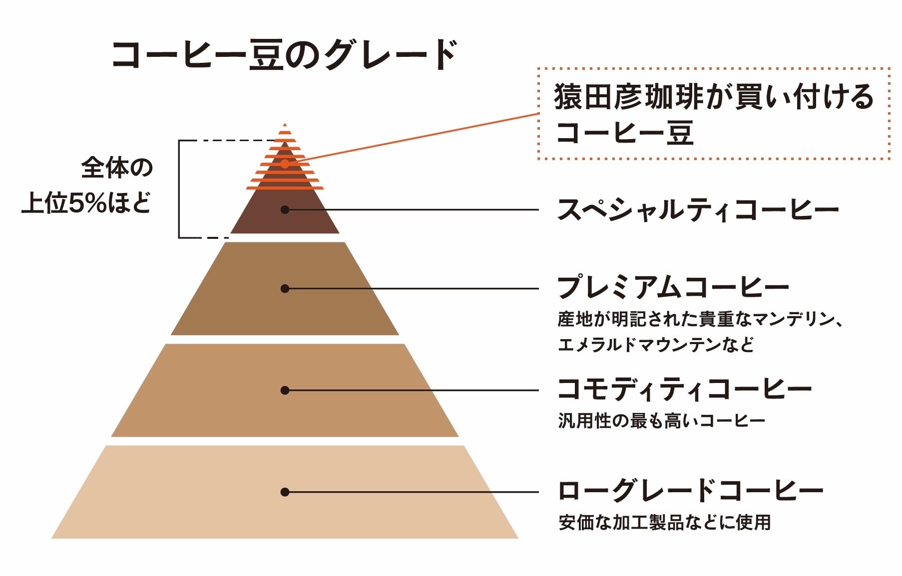 猿田彦珈琲が使用するコーヒー豆は全て、コーヒーの品評会「カップ・オブ・エクセレンス」(COE)にて評価される、スペシャルティコーヒーの中でもトップクラスのみを使用しています。